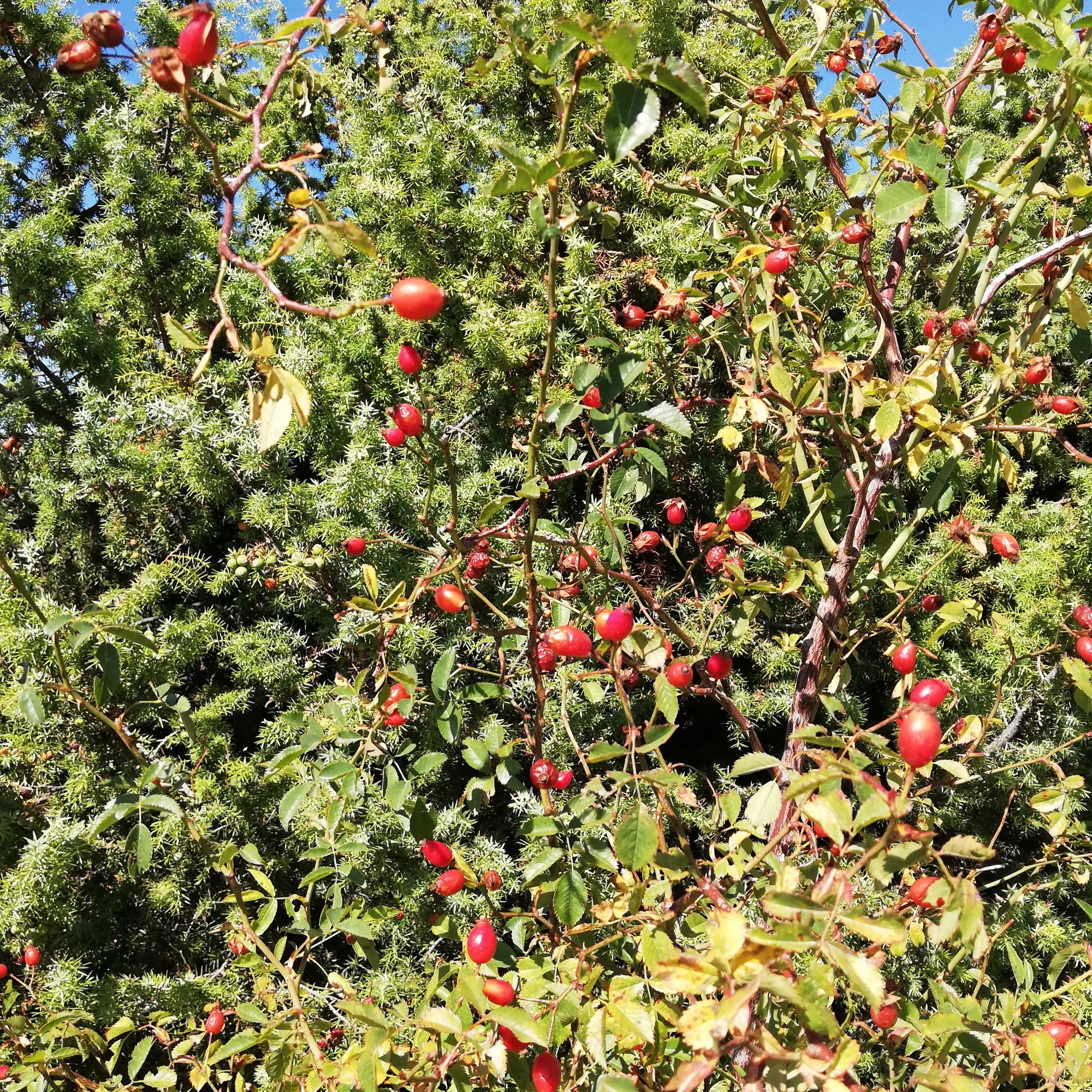 Ahlat, Dağ eriği ve Kuşburnu gördüğümüz ve tadına baktığımız diğer meyvelerdir. Ahlatın olgunlaşmasına biraz daha var ama diğerlerinin tam mevsimiydi. Bu kadar yüksekte hem de burada kızılçamlar önemli bir yer kaplıyor. Yer yer karaçamlar kendilerine alan oluşturmuşlar. Ardıç türleri ise bu mevsimde koyu yeşil görünümleriyle doğal ortama ayrı bir güzellik katıyordu. Yerdeki toprağı korumayı kendine görev edinmiş gevenler aynı zamanda güzel çiçekleriyle torağın üzerini süslemeyi de ihmal etmemişler.